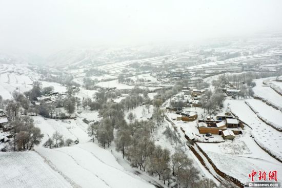 甘肅定西黃土高原現(xiàn)雪凇奇觀