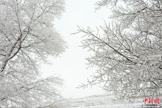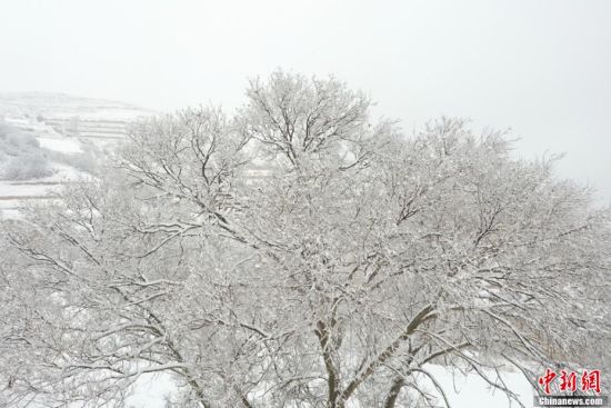 4月3日,甘肅省定西市安定區(qū)石泉鄉(xiāng)山梁上的雪凇將黃土地裝扮得分外嬌艷,枝頭雪凇晶瑩剔透,整片山區(qū)美如仙境,令人嘆為觀止。 王金生 攝