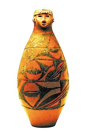 屬于大地灣文化的人頭形器口彩陶瓶