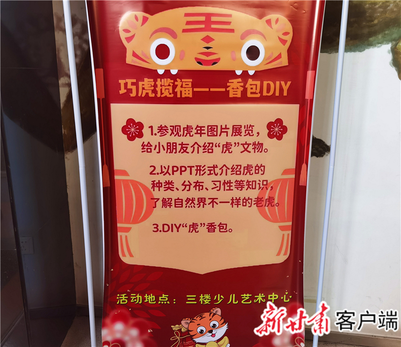 大年初二的“巧虎攬福——香包DIY”活動中,小朋友們則在講解員的介紹下,了解了虎的幾個種類及各異習性;通過“你來比劃我來猜”等小游戲,知曉了2022年北京冬奧會的舉辦時間、地點,包含項目等;并在自主制作香包的過程中,體驗傳統(tǒng)民俗魅力,感受本土文化之美。