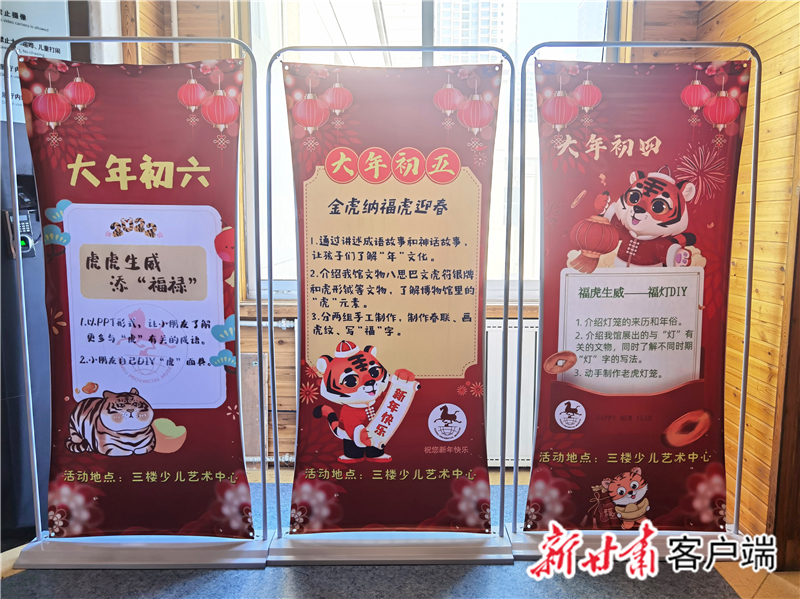 “后續(xù),還有大年初三的‘靈虎送福——虎紙漿畫DIY ’活動、大年初四的‘?;⑸?mdash;—福燈DIY ’活動、大年初五的‘金虎納?;⒂?rsquo;活動、大年初六的‘虎虎生威添‘福祿’活動’。”省博物館社會教育部主任盧冬介紹,每場活動面向約30名小朋友開展,經(jīng)過前期策劃準備,除了省博物館社教部的10余名工作人員,給孩子們普及有關虎和北京冬奧會的知識,還有來自西北師范大學、蘭州二十七中等校的學生志愿者,指導輔助孩子們玩游戲、做手工。