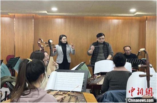 隴劇國家級(jí)傳承人竇鳳霞(左一)和徒弟們進(jìn)行排練。(資料圖) 張煜曼 攝