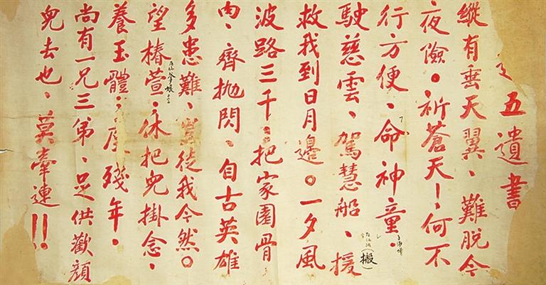王孝錫烈士遺書。