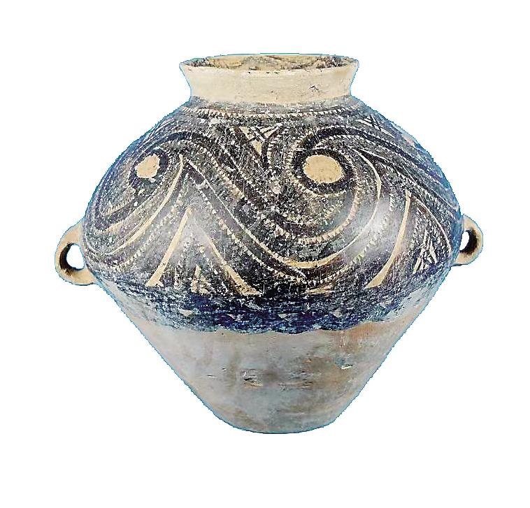 姓名:馬家窯文化半山類型漩渦紋雙耳彩陶罐 出生年代:距今約4650—4350年左右 住址:積石山縣博物館 體型:高34厘米,口徑15.7厘米,腹徑109.9厘米,底徑13厘米 自我描述: 我是國(guó)家二級(jí)文物。我們半山類型彩陶家族成員主要有大型貯藏器壺、甕、罐等。1988年積石山縣癿藏鄉(xiāng)吊地屲村一村民將我捐贈(zèng)給博物館。泥質(zhì)紅陶造就的我,撇口,束頸,溜肩,腹部飾對(duì)稱的雙耳,施黑彩,肩腹部有四方連續(xù)漩渦鋸齒紋,下飾一周水波紋。胎體光亮,紋飾細(xì)膩規(guī)整。