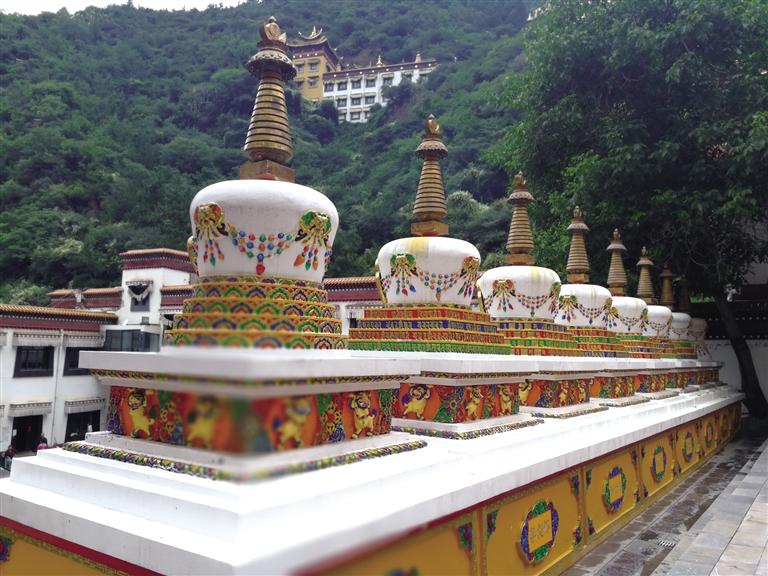 蘭州石佛溝靈巖禪寺坐落在石佛溝腹地,位于蘭州市區(qū)南16公里處的石佛溝國家森林公園內(nèi),是藏傳佛教格魯派(黃教)寺院。石佛溝寺廟發(fā)現(xiàn)于清初,山崖上發(fā)現(xiàn)了—個石洞,洞壁上有石佛像。嘉慶(公元1796年—1820年)時,有僧人化緣募捐,修建石佛寺,并長年住持,石佛溝也因此而得名。北魏太武帝拓跋燾神麚四年(公元431年),鮮卑族首領(lǐng)、吐谷渾白蘭王慕容貴以己隱修之石佛溝靈巖洞為基,拓展建成寺院,因洞內(nèi)有石刻佛像,遂取名“石佛寺”。該寺在清后兩度被毀,2008年重建。寺內(nèi)建有八座白塔,壯觀雄渾。