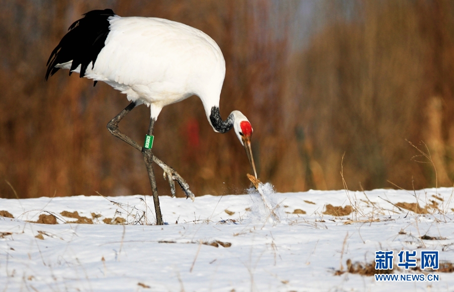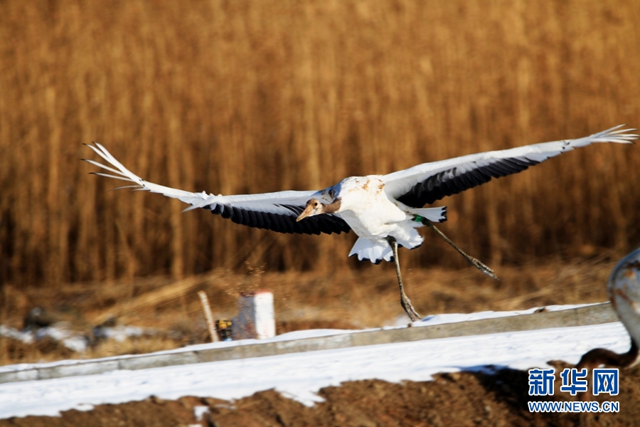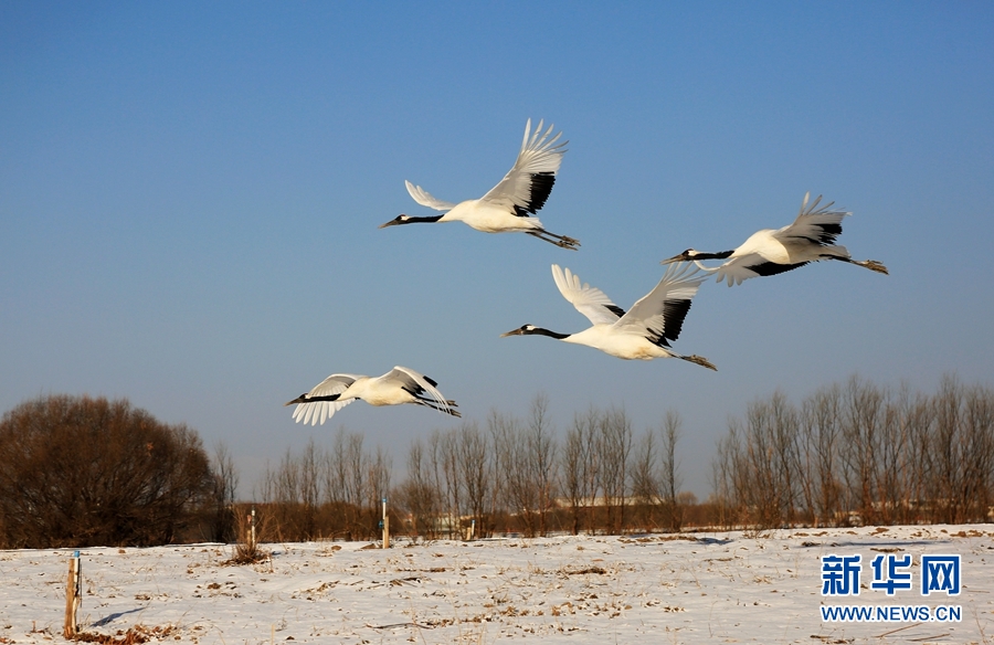 2月14日,雪后初晴,甘肅省張掖國(guó)家濕地公園放飛的十余只丹頂鶴翩翩起舞、嬉戲覓食,使雪后的濕地公園充滿生機(jī)。新華網(wǎng)發(fā)(陳禮 攝)