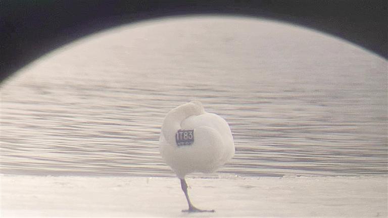 中國甘肅網2月20日訊 據蘭州晚報報道(記者 譚安麗)近日,蘭州市林業(yè)局及蘭州野生動物疫源疫病監(jiān)測站監(jiān)測到,在三河口越冬的大天鵝種群數量較前段時間新增加了3只。其中一只頸部佩戴著藍底白字環(huán)志的大天鵝格外引人注目,環(huán)志上寫著“1T83”,這是蘭州市首次發(fā)現(xiàn)佩戴有明顯標識的大天鵝。