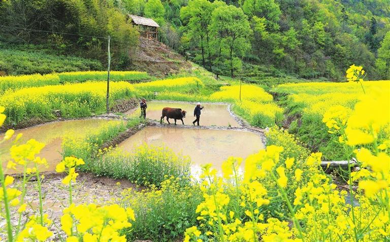 康縣陽壩鎮(zhèn)前山村村民正在翻耕水田,準(zhǔn)備培育水稻秧苗。新甘肅·甘肅日?qǐng)?bào)通訊員 黃培軍