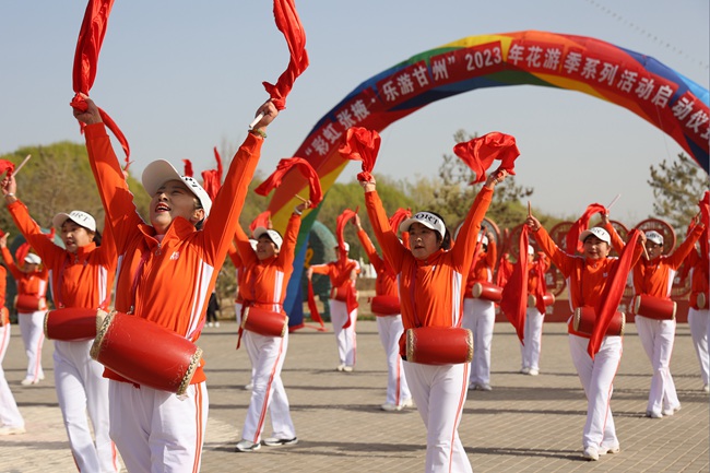 人民網(wǎng)蘭州4月9日電 (記者高翔)4月8日,“彩虹張掖·樂(lè)游甘州”2023花游季系列活動(dòng)啟動(dòng)儀式在甘肅省張掖市潤(rùn)泉湖公園舉行。
