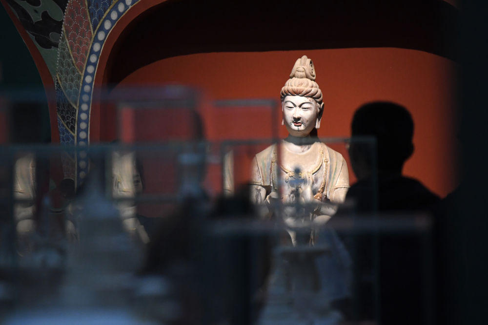 觀眾在敦煌研究院蘭州分院敦煌藝術(shù)館參觀(2023年4月5日攝)。新華社記者 陳斌 攝