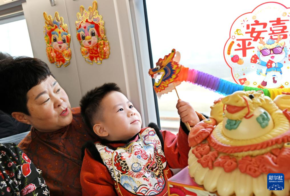 當(dāng)日,中國(guó)鐵路濟(jì)南局集團(tuán)有限公司青島客運(yùn)段在齊魯環(huán)游線G6955次列車上開展“年俗非遺進(jìn)高鐵”活動(dòng),讓旅客在旅途中感受傳統(tǒng)文化的魅力,營(yíng)造濃郁的節(jié)日氛圍。