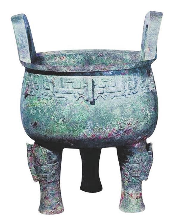 西周最大的圓鼎是陜西歷史博物館收藏的淳化大鼎,造型魁偉、深厚凝重,其造型基本保持了商代晚期胎壁寬厚、形體恢弘、凝重壯闊的風(fēng)格。大鼎通高122厘米,口徑83厘米,耳高28.6厘米,腹深54厘米,重226千克,是迄今世界上最大、最重的西周青銅器,也是迄今出土的西周圓鼎中最大者。淳化大鼎因體形太大太重,除口沿上有兩耳外,器身腰部亦有三耳,形如酒器中的銴。一般的鼎,大多只有口沿耳。淳化大鼎腰部三只獸首屈舌銴,為以往出土銅鼎所未見(jiàn),故又名為獸首屈舌銴鼎、獸面紋五耳鼎。除了獨(dú)特的三耳,淳化大鼎腰部的龍紋和獸面紋的結(jié)合也很有特色。三面各有兩只夔龍,與中間的扉棱組合在一起看,則形成了一張由扉棱為鼻的獸面,即饕餮紋。三張獸面的扉棱下各有一只逼真的牛首浮雕,如同饕餮欲吞食牛,起威懾之用,所以也稱牛首夔龍紋鼎、龍紋鼎等。