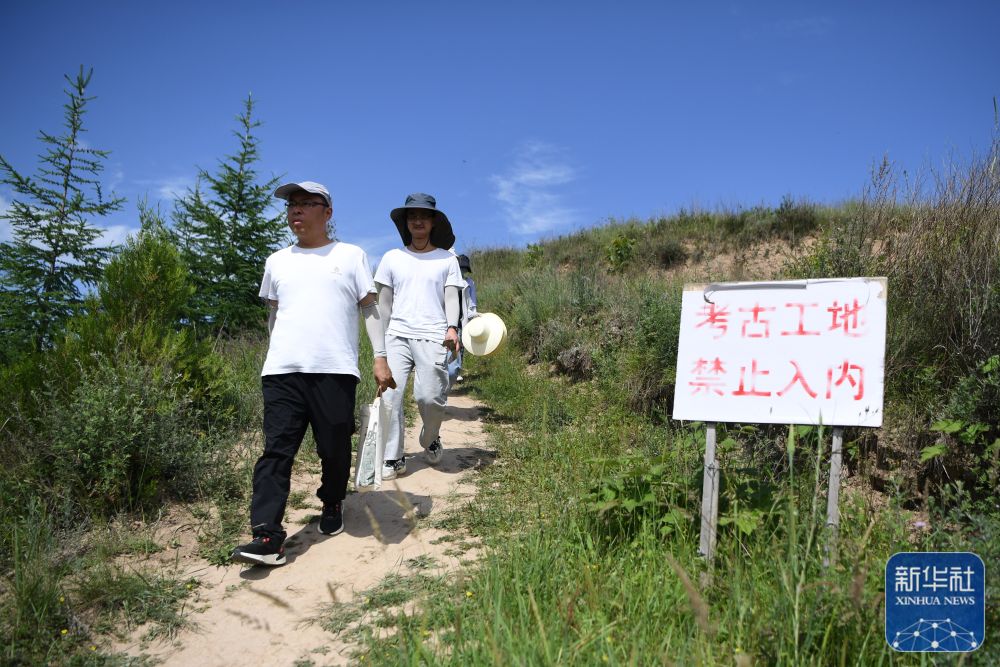 四角坪遺址考古領隊、甘肅省文物考古研究所副研究館員侯紅偉(前)帶領考古專業(yè)研究生在甘肅省隴南市禮縣四角坪遺址考古發(fā)掘現場工作(2022年6月10日攝)。新華社記者 郎兵兵 攝