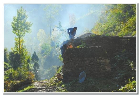 李家山村“鑲嵌”在一個(gè)山洼里,四周全是樹(shù)木,有三棵百年老鐵匠樹(shù)從三個(gè)不同的角度護(hù)衛(wèi)著村莊。出村后沿著田間的小路直接去往一個(gè)叫作“紙坊溝”的小山溝,從字面上就能想到它應(yīng)該與造紙有關(guān)。