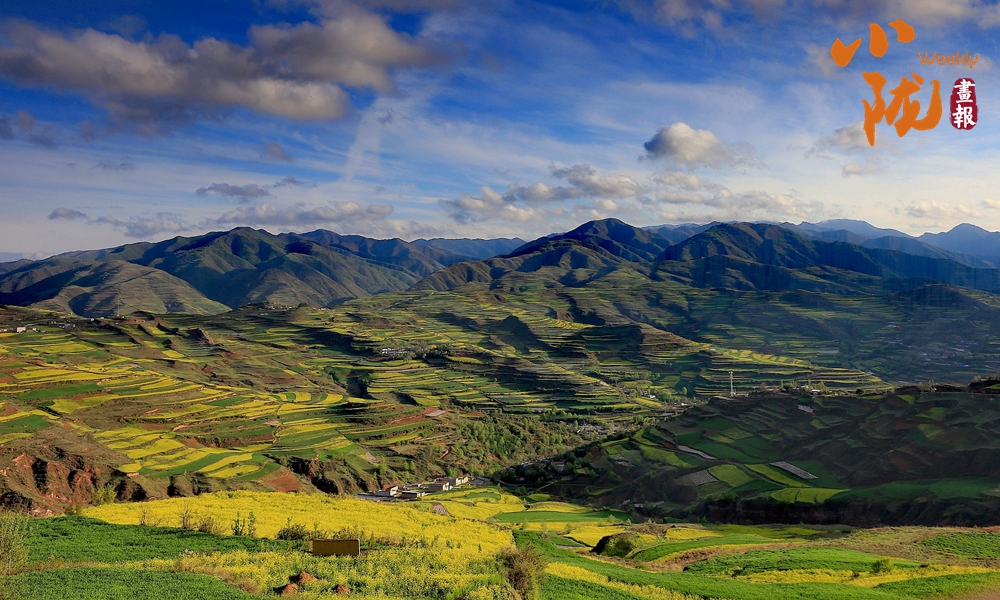 遠處黃綠交錯的油菜花,在藍天白云襯托下艷麗多彩,起伏的山巒上黃色顯得尤為斑斕,這里是眾多畫家、藝術家的創(chuàng)作天堂。
