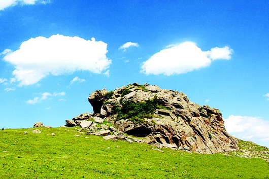 秦人遠(yuǎn)去了,只留下那些讓后人至今懷想不已的地名,諸如石鼓山、景墩梁、牧馬梁、上店子、下店子、大卜峪、瓦泉峪等,而尤以石鼓山最為著名,著名得連那部白發(fā)三千丈的《水經(jīng)注》里,都記載著它的故事:“山在梧中聚,有石鼓不擊自鳴,鳴則兵起。漢成帝鴻嘉三年,天水冀南山有大石自鳴,聲隱隱如雷,有頃止,聞?dòng)谄较宥偎氖铮半u皆鳴。石長(zhǎng)丈三尺,廣厚略等,在崖勒,去地百余丈,民俗名曰石鼓。”石鼓山是朱圉山最高峰,海拔2625米,山峰陡峭,人跡罕至,遠(yuǎn)望如石鼓,近看似臥牛,茂林幽泉,森秀無(wú)比。初春時(shí)節(jié),萬(wàn)物透綠而石鼓白雪皚皚;大雨前夕,飛鳥(niǎo)翱翔而山上煙云彌漫。更為神奇的是,山丘之巔,突兀一石,酷似一頭臥北朝南的耕牛,翹首做犀牛望月之狀,人稱(chēng)臥牛山。臥牛山石頸之下,有一巨石,其面圓而平,每當(dāng)正午陽(yáng)光直射之時(shí),遠(yuǎn)遠(yuǎn)望去,石面宛如獸皮所蒙,恰如一面威風(fēng)凜凜的巨型戰(zhàn)鼓,恍惚之中,有如雷聲隱隱而來(lái),民呼之曰石鼓,石鼓山因此得名。石鼓山素來(lái)以厚重的人文歷史和優(yōu)美的草原風(fēng)光而著稱(chēng),尤為聞名的“石鼓擎雪”,自古就是“甘谷八景”之一。千百年來(lái),石鼓山甘愿舍棄繁華,遠(yuǎn)離人世,在淡泊寧?kù)o的歲月中,固執(zhí)而堅(jiān)定地守望古坡,守望古坡人家。