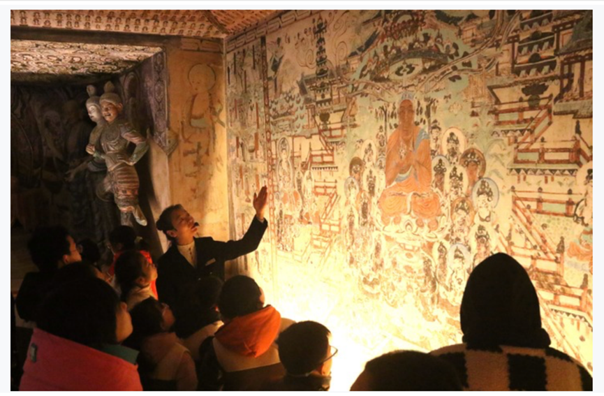 2024年,敦煌市依托當?shù)刎S富的人文遺跡和自然景觀,大力發(fā)展文化研學,建成莫高學堂、鳴沙書院等16個研學基地,推出壁畫臨摹、漢簡學堂等獨具敦煌特色的研學產(chǎn)品,讓游客和學生在參觀的同時進一步體驗敦煌文化的魅力。 據(jù)了解,敦煌市已推出冬春旅游優(yōu)惠政策,對大中小學生免市屬景區(qū)門票,莫高窟對研學團隊開放洞窟由8個增至13個,并配備資深講解員講解。