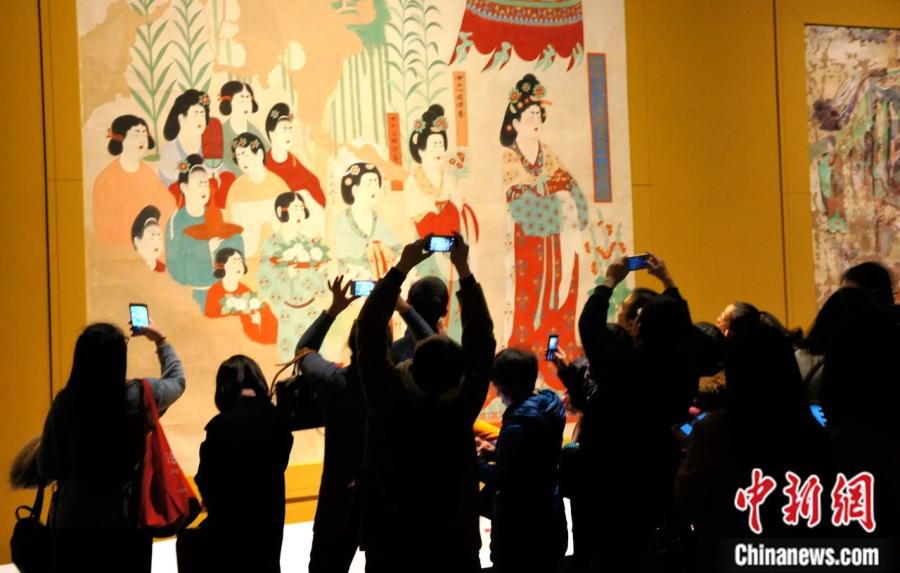 2017年1月,觀眾在成都博物館參觀“絲路之魂·敦煌藝術大展暨天府之國與絲綢之路文物特展”。樊甲山 攝