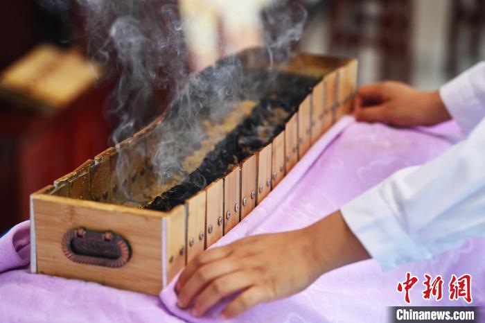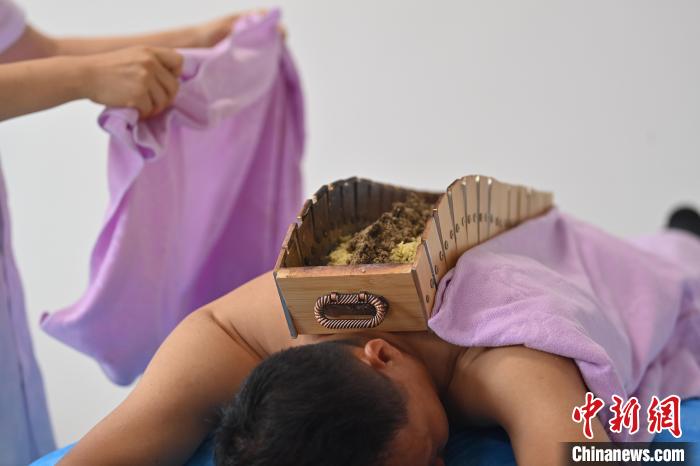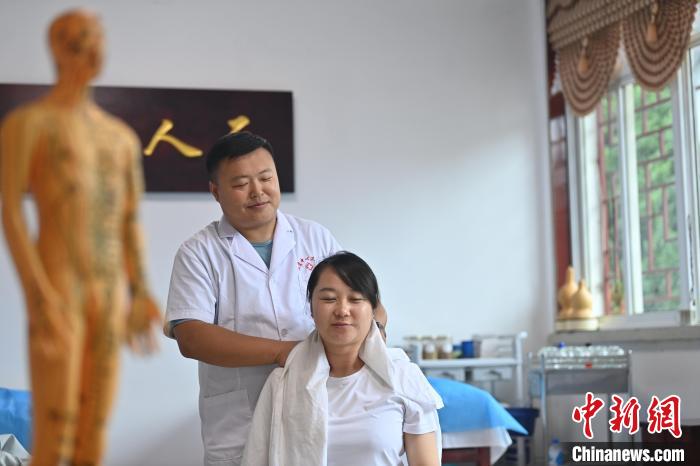 7月16日,甘肅省平?jīng)鍪徐`臺縣皇甫謐針灸康養(yǎng)館內(nèi),工作人員對患者進行推拿治療。2006年,靈臺皇甫謐針灸術(shù)入選第一批甘肅省非物質(zhì)文化遺產(chǎn)名錄。靈臺作為皇甫謐故里,當?shù)孛癖姺浅UJ可中醫(yī)康養(yǎng),針灸、拔火罐、推拿、葫蘆灸、火龍灸(督脈灸)等中醫(yī)特色療法受到了很多人的青睞,當?shù)毓俜揭餐ㄟ^舉辦大型節(jié)會等助推中醫(yī)康養(yǎng)產(chǎn)業(yè)發(fā)展。 皇甫謐是針灸醫(yī)學(xué)鼻祖,其《針灸甲乙經(jīng)》已在多個國家被廣泛傳播應(yīng)用。  中新社記者 李亞龍 攝