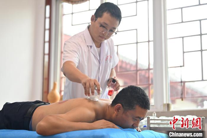 7月16日,甘肅省平?jīng)鍪徐`臺縣皇甫謐針灸康養(yǎng)館內(nèi),工作人員對患者進行拔火罐。2006年,靈臺皇甫謐針灸術(shù)入選第一批甘肅省非物質(zhì)文化遺產(chǎn)名錄。靈臺作為皇甫謐故里,當?shù)孛癖姺浅UJ可中醫(yī)康養(yǎng),針灸、拔火罐、推拿、葫蘆灸、火龍灸(督脈灸)等中醫(yī)特色療法受到了很多人的青睞,當?shù)毓俜揭餐ㄟ^舉辦大型節(jié)會等助推中醫(yī)康養(yǎng)產(chǎn)業(yè)發(fā)展。 皇甫謐是針灸醫(yī)學(xué)鼻祖,其《針灸甲乙經(jīng)》已在多個國家被廣泛傳播應(yīng)用。  中新社記者 李亞龍 攝