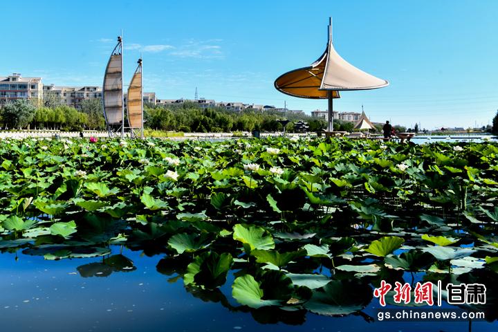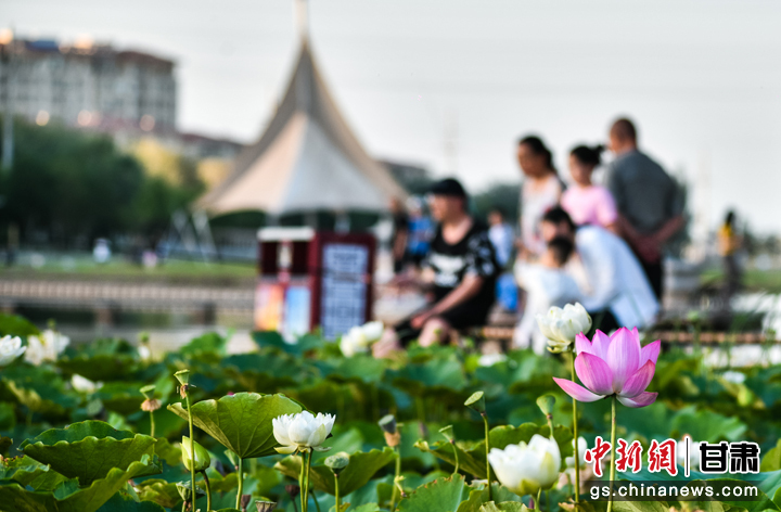 “接天蓮葉無窮碧,映日荷花別樣紅。”盛夏時(shí)節(jié),敦煌大漠綠洲持續(xù)高溫,鳴沙山下各種植物茁壯生長,黨河風(fēng)情線上的荷塘里荷花也競(jìng)相綻放,紅的、白的,一朵朵,一簇簇,在微風(fēng)中搖曳,吸引眾多游人前來休閑避暑,賞荷納涼。王斌銀 攝