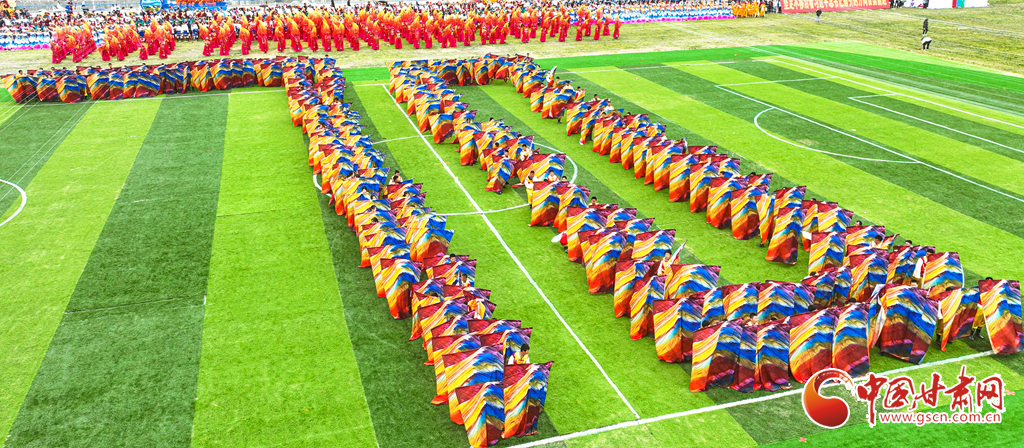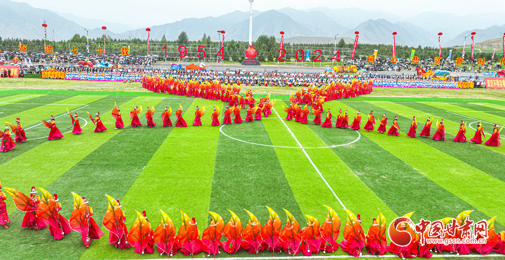 8月13日,甘肅省張掖市肅南裕固族自治縣萬名群眾身著節(jié)日的盛裝,齊聚在索朗格賽馬場上,展開主題為“感恩奮進(jìn)七十載·同心共富新時代”的歌舞表演,感謝偉大的中國共產(chǎn)黨,謳歌美好的新生活。