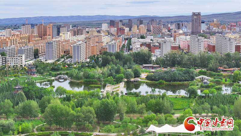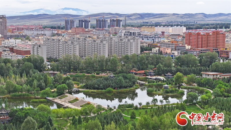 9月5日,雨過天晴的張掖民樂縣,城市清新如洗、生機(jī)盎然。云霧繚繞的山巒與高樓、民居、綠植相映成趣,繪出一幅如詩如畫的生態(tài)圖景。