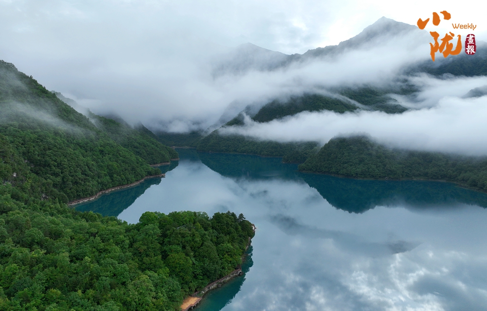 雨后,文縣天池云霧繚繞,翠綠的山巒、碧綠的湖水,相互輝映,美輪美奐,宛若仙境。