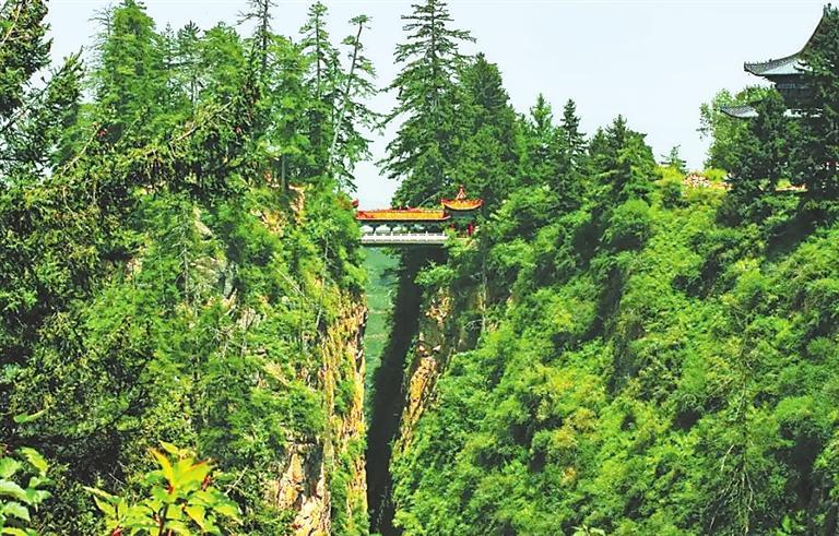其實,石門山系小隴山林區(qū)的余脈,蘊藏著得天獨厚的植物資源,有我國南北的各種野生植物百余種,其中有很多還是園林中的珍品。據(jù)景區(qū)資料得知,石門山由北峰、麒麟峰、南峰構成。北峰建有無量殿、靈官殿、文昌宮、三清殿、鐘樓。麒麟峰建有圣母宮、三肖殿、三仙庵。南峰峰頂建有玉皇閣和三官殿。這些殿宇大多為明清重修,依山就勢,錯落有致,風格纖巧,玲瓏俊秀,最小的殿宇僅有5至6平方米,在石門山的萬綠叢中時隱時現(xiàn),猶如一幅濃淡相宜,層次分明的水墨畫,形成了石門山特有的風韻。