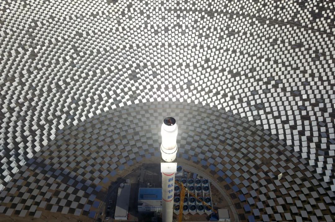 人們驚呼,這是自然力與人類智慧的完美創(chuàng)造:戈壁荒灘上“種”出了人造太陽。這個(gè)100兆瓦熔鹽塔式光熱電站,占地面積相當(dāng)于780個(gè)足球場,每年所生產(chǎn)的綠電可減排35萬噸二氧化碳。