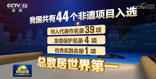 聯(lián)合國(guó)教科文組織非遺名錄名冊(cè),包括三種類(lèi)型:人類(lèi)非物質(zhì)文化遺產(chǎn)代表作名錄、急需保護(hù)的非物質(zhì)文化遺產(chǎn)名錄,以及優(yōu)秀實(shí)踐名冊(cè)。據(jù)央視新聞聯(lián)播報(bào)道,截止2024年12月5日,我國(guó)已有44個(gè)項(xiàng)目(39+4+1)列入聯(lián)合國(guó)教科文組織非物質(zhì)文化遺產(chǎn)名錄、名冊(cè),總數(shù)居世界第一,充分展示了我國(guó)開(kāi)展非遺系統(tǒng)性保護(hù)的優(yōu)秀實(shí)踐和突出成果。