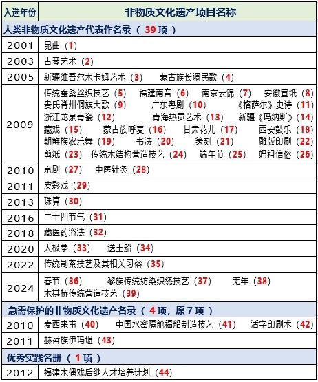 一、我國(guó)共有44個(gè)入選世界級(jí)的非遺項(xiàng)目,總數(shù)居世界第一