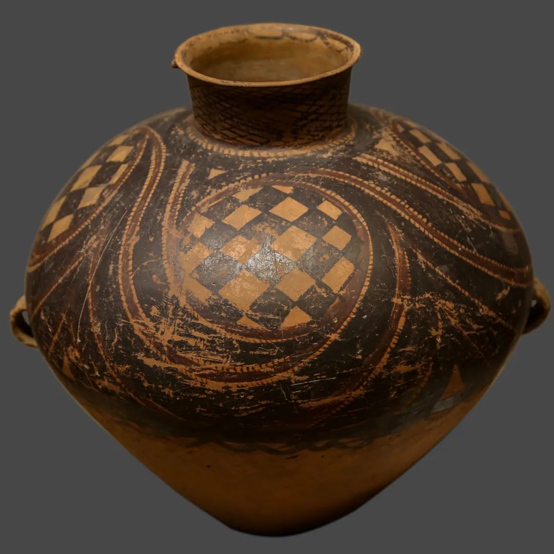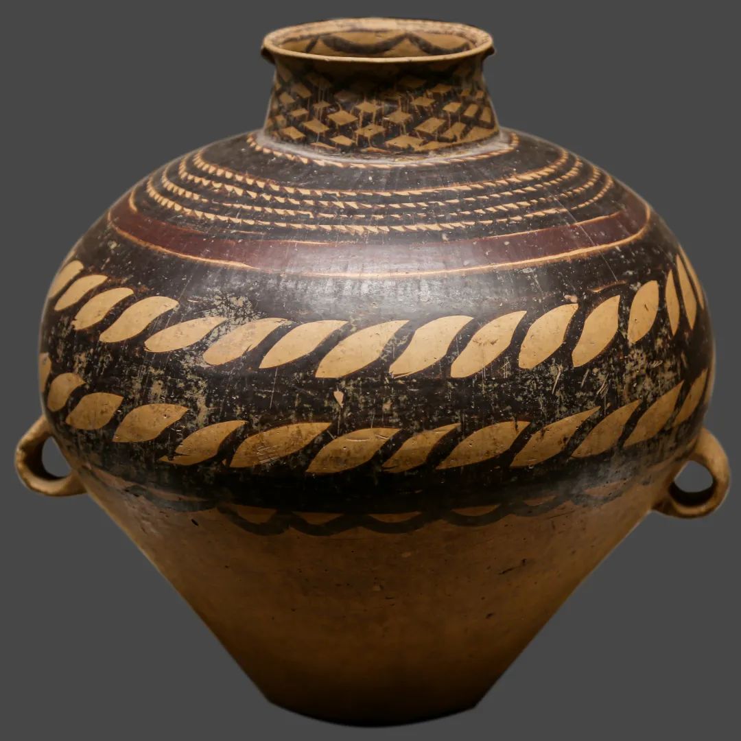 馬家窯文化如黃河上游的基因庫(kù),約公元前3300年萌芽于甘肅定西臨洮,承仰韶文化西進(jìn)之火種,以洮河為血脈、黃土為肌理,在旋轉(zhuǎn)的陶輪間淬煉出黑彩翻涌的史前藝術(shù)密碼,成為西北大地孕育新石器文明的第一縷熾熱胎動(dòng)。