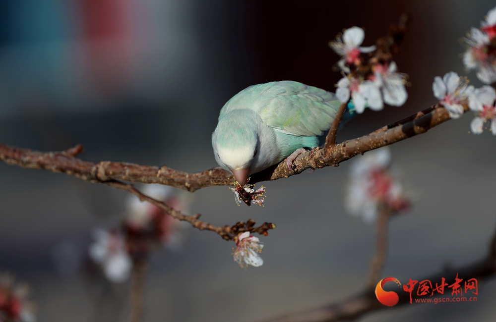 隴拍客|金塔:杏花枝頭鸚鵡鬧