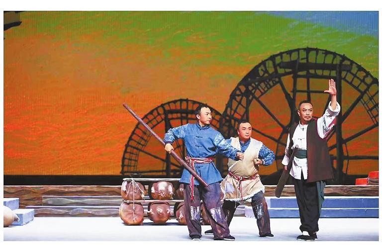 地域文化符號的創(chuàng)造性轉化,是該劇藝術創(chuàng)新的另一亮點。劇中,蘭州太平鼓、黃河水車等元素被巧妙融入劇情:太平鼓在“祭河神”的一場戲中既是祭祀道具,又成為鼓舞士氣的戰(zhàn)鼓;黃河水車則通過光影變幻,象征著時代的流轉與歷史的延續(xù)。這種將地域文化符號轉化為戲劇語言的嘗試,使作品在保持隴劇本體特征的同時,獲得了更廣闊的審美空間。