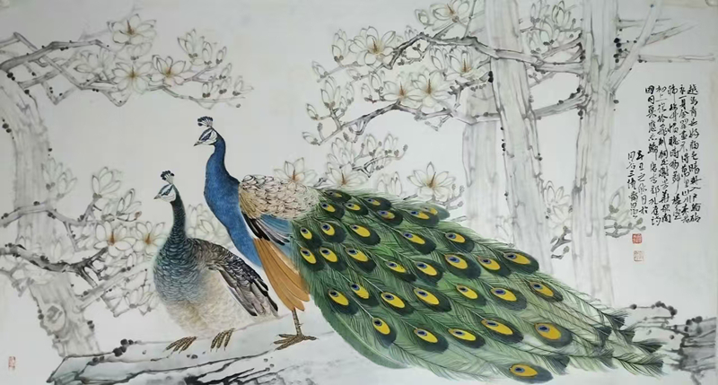 近年來,王自強的創(chuàng)作逐漸從具象走向意象。他嘗試將工筆畫的細(xì)膩與隸書的厚重結(jié)合,在《荷塘清韻》等作品中,荷葉的墨色層次與書法的線條韻律相互映襯,形成“書畫同源”的藝術(shù)境界,這種對書法藝術(shù)的探索精神不僅得到業(yè)界認(rèn)可,而且得到了社會的廣泛認(rèn)同。