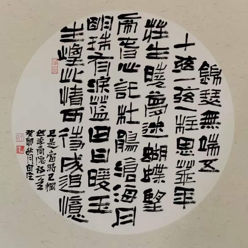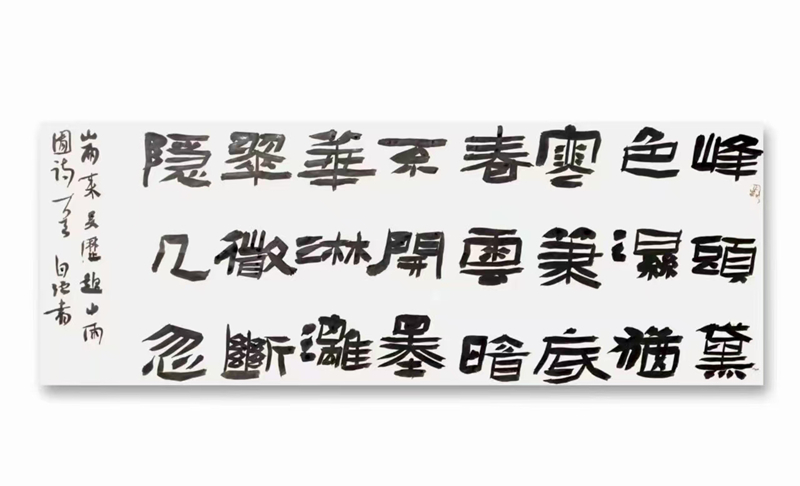 王自強的隸書植根于《西狹頌》的金石氣,又融入個人創(chuàng)新。他的作品《李白古風(fēng)其一》在2021年“中國書法·年展”中脫穎而出,以古樸厚重的筆法、靈動多變的章法,位列全國前51名,成為成縣首位躋身國家級書法大展的藝術(shù)家。2025年,他的隸書作品再次入選全國第五屆隸書作品展,在15214件投稿中脫穎而出,展現(xiàn)出對漢隸藝術(shù)的深刻理解與創(chuàng)新表達(dá)。