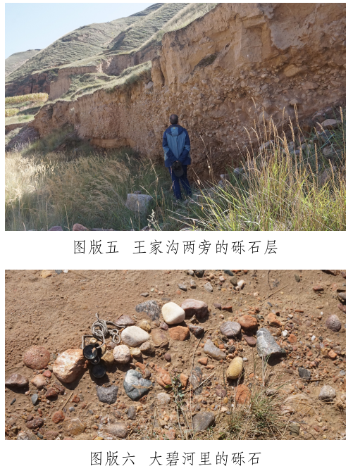 玉石山南麓有一條自東向西流過峽口鎮(zhèn)注入洮河的河——大碧河,《狄道州志》里稱為“打璧河” [12]。玉石山和山下大碧河之間有幾條溝,這些溝是上玉石山的必經(jīng)道路,也是雨水夾帶山上的石頭注入大碧河的通道。在甘肅臨洮馬家窯文化研究院李家功的引領(lǐng)下,我們對(duì)大碧河中下游和通往玉石山的三條支溝進(jìn)行了較系統(tǒng)的調(diào)查,調(diào)查方法是在訪問當(dāng)?shù)赜嘘P(guān)人員的基礎(chǔ)上,進(jìn)行野外實(shí)地考察。大碧河連接玉石山的支溝主要有三條:第一條大溝是王家溝,是玉石山和峽口鎮(zhèn)之間的通道,大雨過后附近的村民往往會(huì)在這條溝里撿到玉石。在王家溝靠近玉石山的茨泉子村,十多戶村民都拿出自己在溝中揀到的十余件山流水玉料(圖版四)供我們觀察、檢測。玉料大小不一,大者長軸約30厘米,多呈次圓狀,均有玉皮,內(nèi)部質(zhì)地多細(xì)膩,肉眼鑒定和XRF檢測結(jié)果表明,玉石主要包括黃綠色(含草花)透閃石玉、透輝透閃石玉及透閃石大理巖,另外還有螢石料。王家溝下游匯入大碧河入口段,發(fā)育三級(jí)階地,前人使用大型機(jī)械開挖二、三級(jí)階地礫石層(圖版五),據(jù)說在其中找到較多玉料,現(xiàn)政府已叫停。在階地礫石層中我們也撿到淺黃綠色透輝透閃石大理巖及半玉化的大理巖礫石,這些礫石是玉石山玉礦的近礦圍巖。王家溝匯入大碧河,因此大碧河中也可以撿到從王家溝滾落的玉石山上的玉石和其它巖石。我們?cè)诖蟊毯訊{口鎮(zhèn)段揀到較多直徑約3~5厘米來自玉石山的透閃石大理巖,巖石磨圓度高,成球狀或橢球狀,質(zhì)地較細(xì)膩。據(jù)當(dāng)?shù)厝酥v,也有人在大碧河峽口鎮(zhèn)段撿到過小塊的玉石;第二條溝是小溝——漆家溝,位于王家溝西面,雖位于玉石山正面,但鮮有聽到在溝里撿到玉石的消息;第三條溝是王家溝東面的石景峽,距離玉石山相對(duì)較遠(yuǎn),其溝腦是玉石山的東延部分?!兜业乐葜尽防镙d“打璧河,在州北三十里,源出石井峽,即打璧谷” [13]。這里的“石井峽”可能就是現(xiàn)在所說的“石景峽”,峽中腰有水冒出。但現(xiàn)在的大碧河不源于石景峽,而是源于洮河和渭河的分水嶺。石景峽雖可能是史籍上的打璧谷,且在峽里也撿到了透閃石大理巖礫石,但沒有發(fā)現(xiàn)玉石器和玉料。
