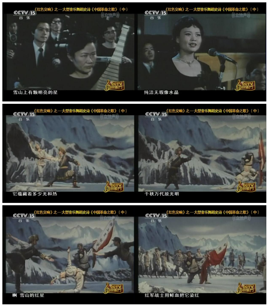 而在音樂與舞蹈的融合道路上,創(chuàng)作于1984年的大型音樂舞蹈史詩《中國革命之歌》,邁向了一種更為宏大的藝術(shù)形態(tài)。作品融舞蹈、音樂、朗誦與舞臺視覺于一體,以全景敘事回溯革命征程。其中第三時期的片段《紅軍不怕遠(yuǎn)征難》,以“雪山紅星”為核心意象,在交響樂、合唱與舞蹈的交織中,唱響了那段艱苦卓絕的歷程。