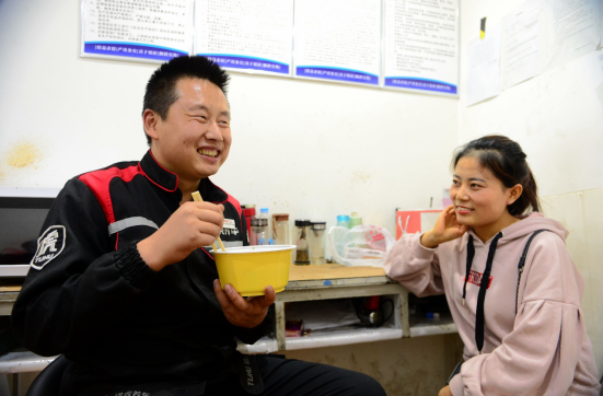 “還是老婆做的飯菜好吃,外賣真吃不成!”在門店內(nèi),范宗英接待完客戶,吃到了愛(ài)人親手做的飯菜,一邊聊著家常,一邊還不忘笑嘻嘻地貧嘴。