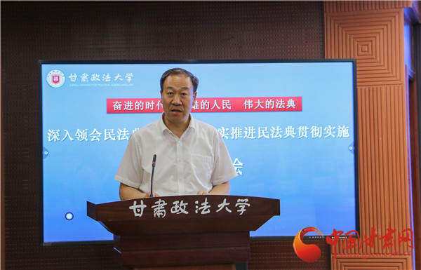 中國(guó)甘肅網(wǎng)7月9日訊 (本網(wǎng)記者 彭曉姣)7月8日,甘肅政法大學(xué)召開“深入領(lǐng)會(huì)民法典核心要義,切實(shí)推進(jìn)民法典貫徹實(shí)施”理論研討會(huì)。研討會(huì)的主旨是深入貫徹落實(shí)習(xí)近平總書記關(guān)于“切實(shí)實(shí)施民法典”的重要講話精神,為甘肅省有效實(shí)施民法典、不斷完善民商事法律制度提供理論支撐。