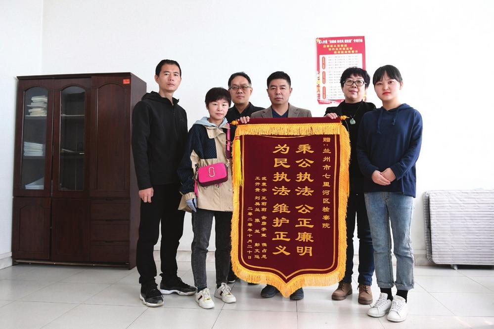 中國(guó)甘肅網(wǎng)10月27日訊 據(jù)蘭州晚報(bào)報(bào)道(記者 許沛潔 文/圖) “今天,我們專(zhuān)程過(guò)來(lái)感謝各位檢察官。你們維護(hù)了公平正義,如果沒(méi)有檢察院的依法監(jiān)督,我們這8個(gè)家庭就要背負(fù)287萬(wàn)元的債務(wù)!”這份感謝來(lái)自七里河區(qū)檢察院辦理的一起民事審判監(jiān)督系列案件的多名申請(qǐng)人。10月26日,他們將一面錦旗交到了七里河區(qū)檢察院梁德安副檢察長(zhǎng)和第四檢察部負(fù)責(zé)人手中,表達(dá)對(duì)辦案檢察官的感謝之情。