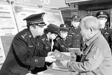 12月3日,定西監(jiān)獄組織青年民警普法宣傳隊(duì)來到汽車站社區(qū)開展憲法宣傳進(jìn)社區(qū)活動(dòng)。隊(duì)員向市民發(fā)放憲法手冊(cè)和宣傳彩頁,宣傳憲法內(nèi)容,強(qiáng)化市民的法治意識(shí)。