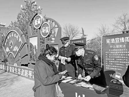 12月4日,平?jīng)霰O(jiān)獄組織民警在市人民廣場社區(qū)開展憲法宣傳進(jìn)社區(qū)活動(dòng),通過向市民發(fā)放憲法手冊(cè)和宣傳彩頁等方式,讓廣大市民深入認(rèn)識(shí)憲法、了解憲法。