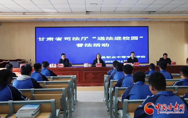 中國甘肅網4月27日訊(本網記者 李紅軍)為進一步提升廣大青少年法治素養(yǎng)和法治意識,近日,甘肅省司法廳在漳縣開展“送法進校園”普法志愿服務活動,為漳縣職業(yè)中等專業(yè)學校送去憲法、民法典等系列普法圖書及普法宣傳物品,現場開展了專題法治講座,學校200余名師生代表參加活動。