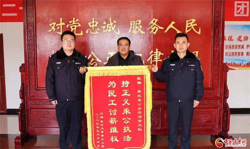 中國(guó)甘肅網(wǎng)2月3日訊(本網(wǎng)記者 程?。?月2日,劉先生代表20余名工友將一面印有“持正義秉公執(zhí)法,為民工討薪維權(quán)”的鮮紅錦旗送到了蘭州市皋蘭縣公安局,以此表達(dá)對(duì)縣局治安管理大隊(duì)民警幫其辛苦討要工資的感謝。