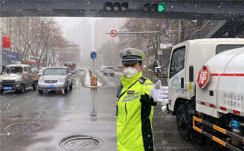 大隊(duì)領(lǐng)導(dǎo)實(shí)地查看道路通行情況,及時(shí)調(diào)整勤務(wù)模式和警力部署,確保降雪天氣各項(xiàng)安全“防控”措施落實(shí)到位。民輔警全員上路,強(qiáng)化重點(diǎn)路段巡邏管控和主要路口值守,對(duì)不具備通行條件車輛進(jìn)行勸返或提示繞行。通過鳴笛、喊話、閃爍警燈等措施,提醒駕駛員裝配防滑鏈,減緩車速、保持安全車距、注意觀察路面通行情況,引導(dǎo)車輛和行人安全有序通行。