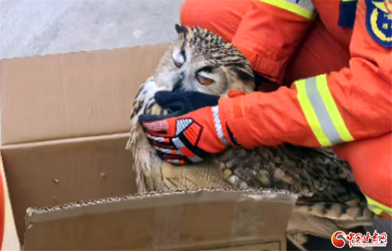 經(jīng)工作人員辨認(rèn),該鳥類為雕鸮,屬國(guó)家二級(jí)保護(hù)動(dòng)物,經(jīng)檢查該雕鸮無外傷,符合放生條件,遂將其帶到安全區(qū)域后放回了大自然。