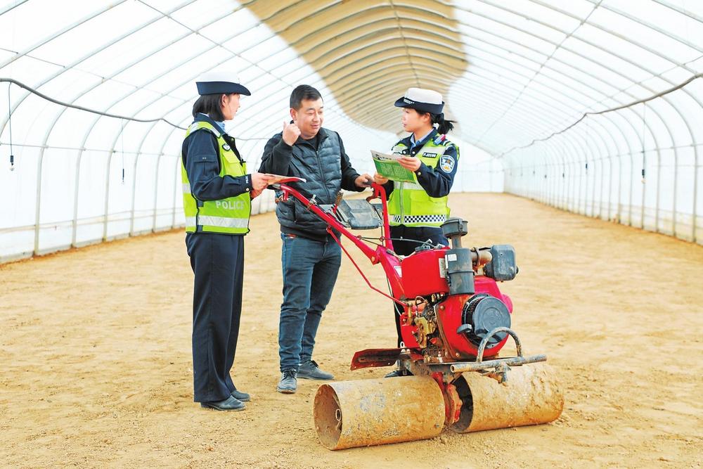 民警向群眾講解交通安全知識(shí)。3月6日,定西市公安局安定分局民輔警走進(jìn)田間地頭,開展護(hù)航春耕交通安全宣傳活動(dòng),營(yíng)造安全暢通的道路交通環(huán)境。 新甘肅·甘肅法治報(bào)通訊員楊永剛攝