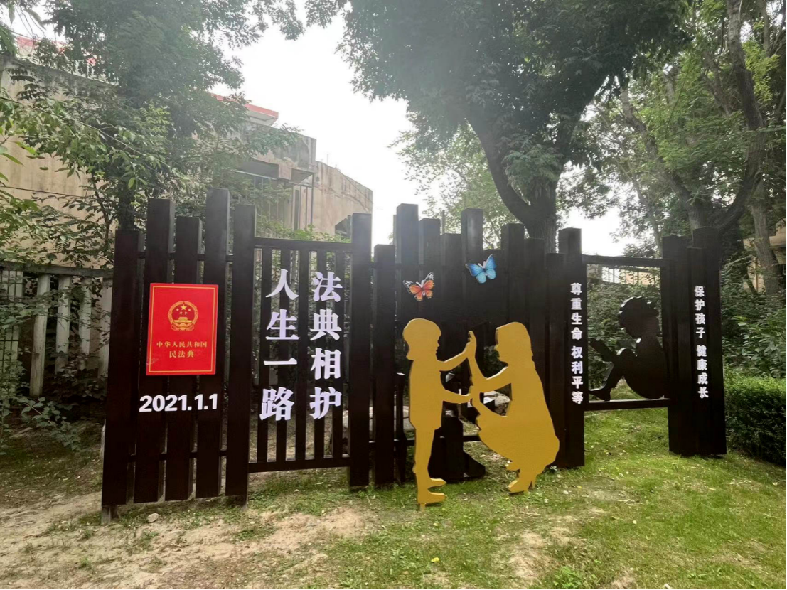 除了線上“第一課”,記者看到,金城公園設(shè)置憲心園、典護(hù)園、網(wǎng)絡(luò)安全主題區(qū)、法治文化廣場(chǎng)四大主題普法區(qū):憲心園設(shè)巨型《憲法》刻書;典護(hù)園設(shè)立了《民法典》宣傳建筑與母子雕塑;網(wǎng)絡(luò)安全主題區(qū)則以圓形建筑為“防護(hù)墻”,聚焦網(wǎng)絡(luò)詐騙、個(gè)人信息保護(hù)等,提升網(wǎng)絡(luò)安全意識(shí);法治文化廣場(chǎng)融合明清仿古建筑與現(xiàn)代法律元素,設(shè)置《民法典》生活展牌、網(wǎng)絡(luò)普法園等。